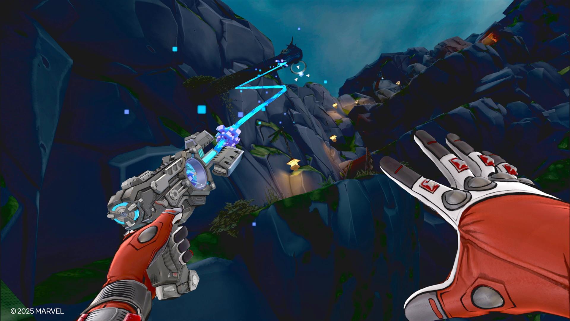 Toward the end of the demo, Deadpool gets access to a grapple gun, which allowed me to grapple all over a room while spraying guys below me with an endless hail of lead. The mechanic reminded me of the VR hijinks you can pull off in Sairento VR, combining double jumps, wall runs, and grappling to completely stymie your foes and take them down before they know what happened. It's a total hoot.