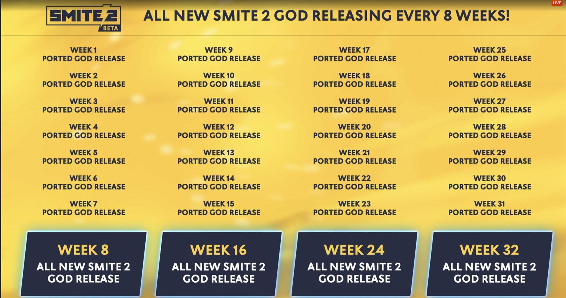 Then we got a major announcement and that announcement was that a SMITE 1 god will be ported over to SMITE 2, every week, for the next 32 weeks. Along side that, every 8 weeks a brand new god will be added to the game including Bari, the first god from the new Korean Pantheon.