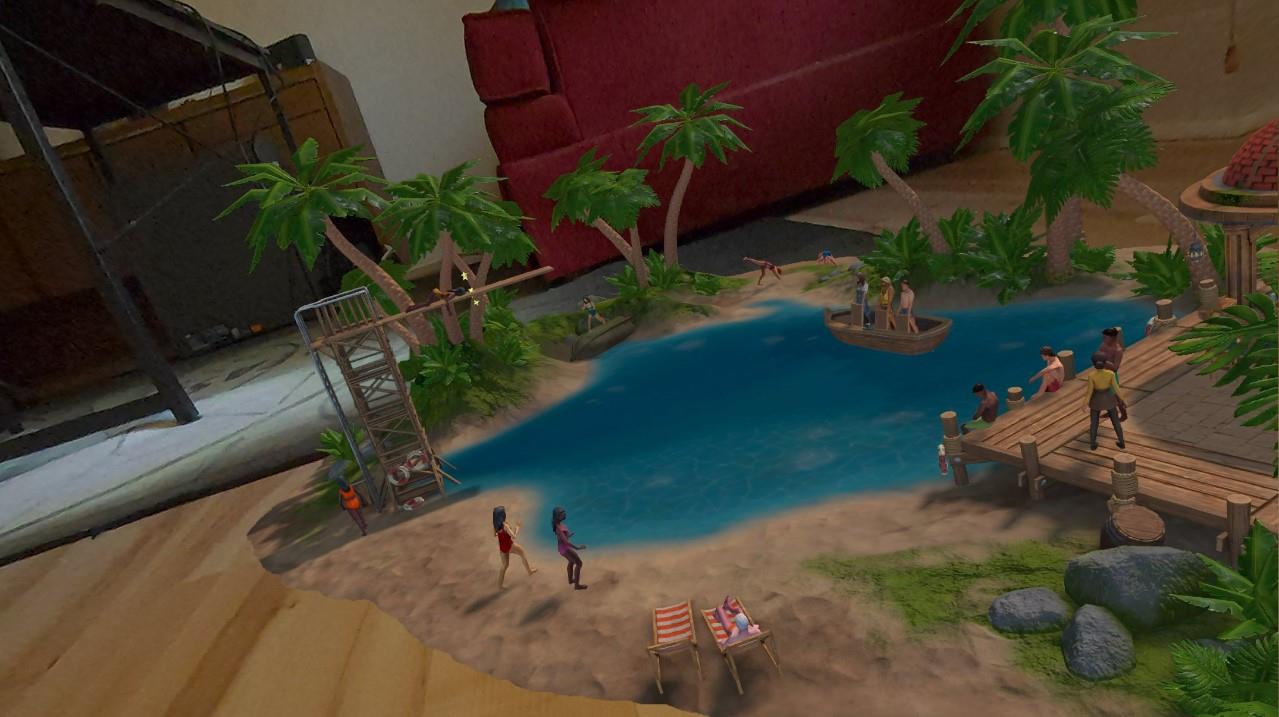Most of the buildings come with new inhabitants for your town, little people that interact with their surroundings and each other in surprising and often delightful ways. These people are rendered with a surprising amount of detail, and the animation - possibly motion captured - is astoundingly good. These folks think nothing of leaving their little town to go on adventures around your room, using a variety of vehicles or even hopping onto your controller for a quick ride.