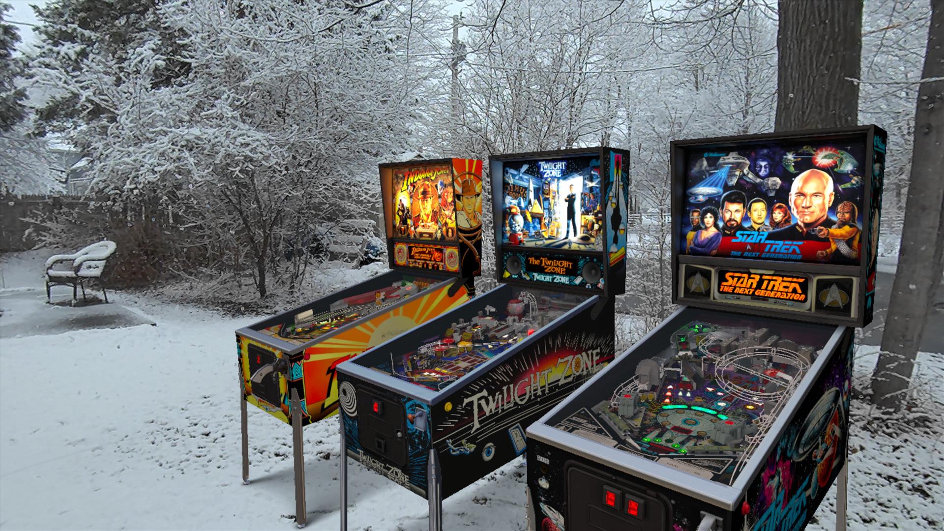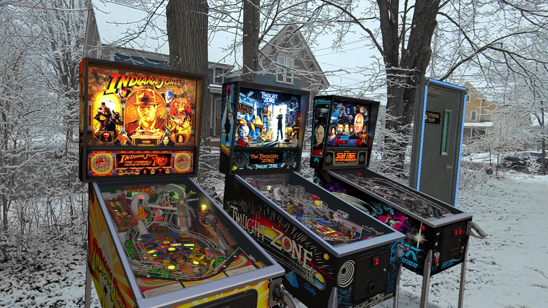 AND, you can just kinda plant the inventory door right there on the snowy lawn, looking like the door to another dimension, so you can drag more pinball machines out and assemble your entire collection right there in the snow. TRY THAT, PLAYSTATION PINBALL FX!