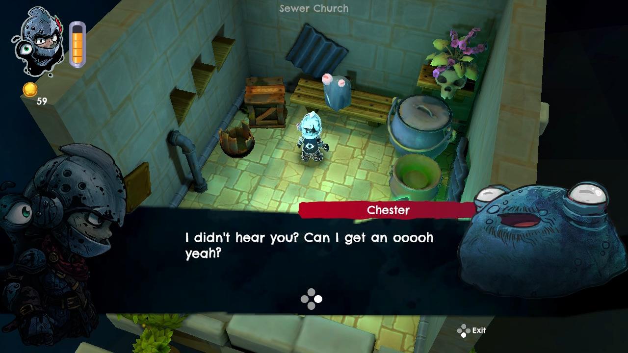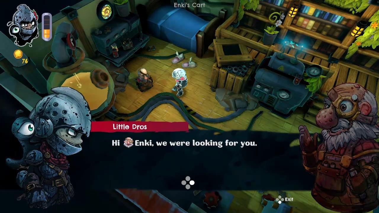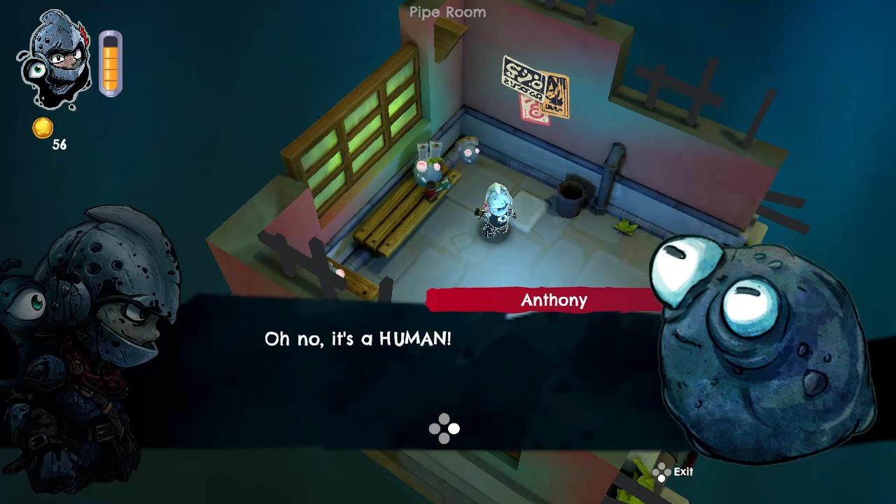 With everything I enjoyed about DROS, there is one thing that can make things a tad frustrating and it pretty much comes with the genre: platforming in a 3D environment. While Captain moves at about a normal pace for a human wearing armor, Little Dros moves a bit quicker since she’s a small blob. Thankfully, her aerial movement while jumping is pretty tight but a lot of places require some precise jumping onto small platforms. You can rotate the camera freely but you can’t really move it vertically; instead you can zoom in a out, which helps a bit, but can still make certain jumps a little difficult, especially when you still have a bit of momentum when landing making it very easy to accidentally slide off of a platform or cause the player to “panic jump” once they land, making things worse.