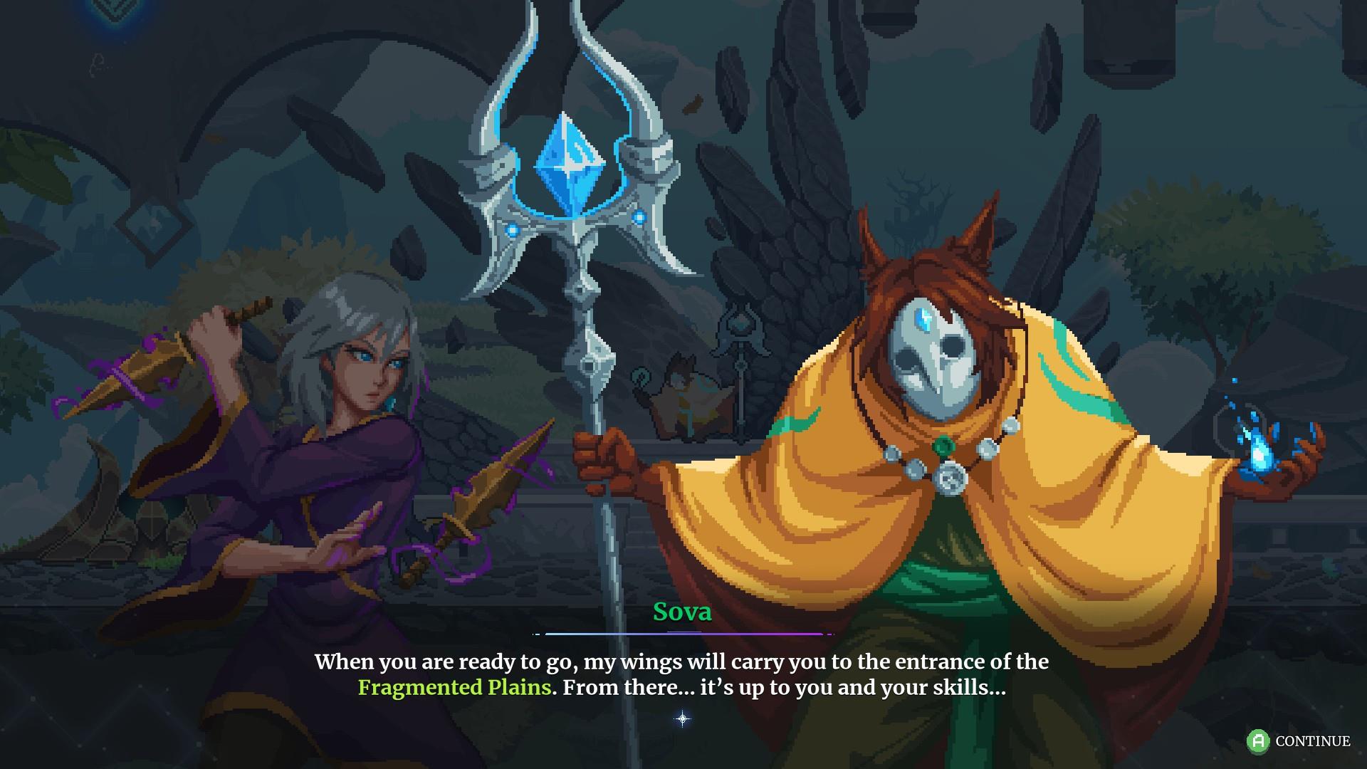 At some point you are going to die, but death isn’t permanent. Upon dying you’ll gain experience points and some sun pieces depending on how much progress you made. After arriving back at The Garden you can visit with the other residents to learn more about them and The Garden itself as well as purchase some upgrades using the sun pieces. Sun pieces can be used to purchase permanent upgrades to your stats and can open up new spells to find during your escape attempts depending on your character’s current level. Anything purchased with sun pieces is permanent and is how you can improve yourself to progress further and further on each subsequent attempt.