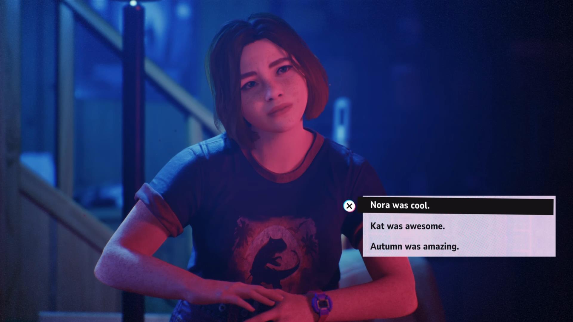 Another thing I liked is how different dialogue options can appear depending on how much you listen to a conversation. When the girls start talking, you’ll usually get dialogue options to respond, but sometimes, if you keep listening, new options will appear, and some of these can raise your relationship levels with the characters. This feature seems like something that will play into Tape 2. The game also appears to have romance options, as dialogue can get flirty, though you can avoid it if you want. That said, while I found it interesting that I was raising relationship levels with characters, there was no payoff yet, so I’m excited to see how this plays out in the second episode. Another feature I liked was how dialogue in either time period can change the story. The game frequently switches between 2022 and 1995, and your choices affect how things play out. For example, in 2022, when Swann and her friends try to recall details about what happened in 1995, you’re presented with choices. These then impact what actually happened in 1995—ranging from small details, like song lyrics the girls wrote, to major choices that could affect the story’s trajectory in the past, present, and Tape 2.