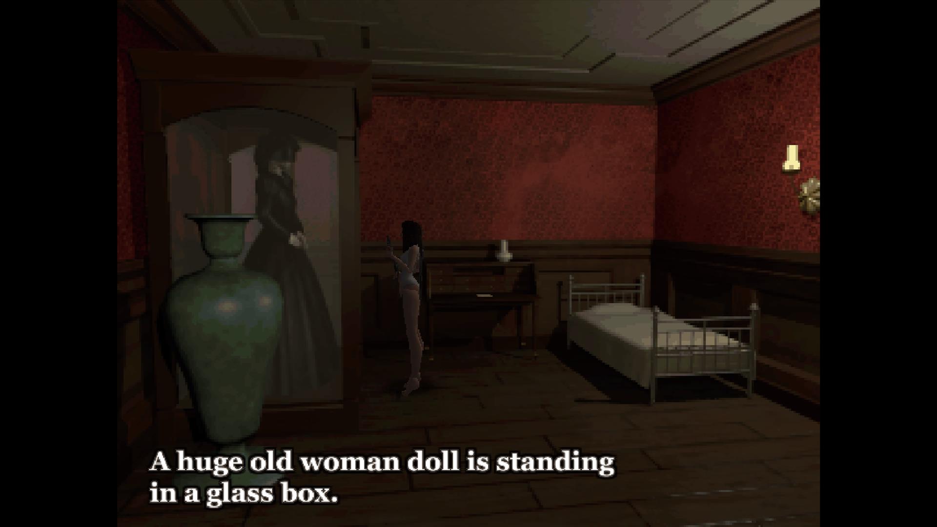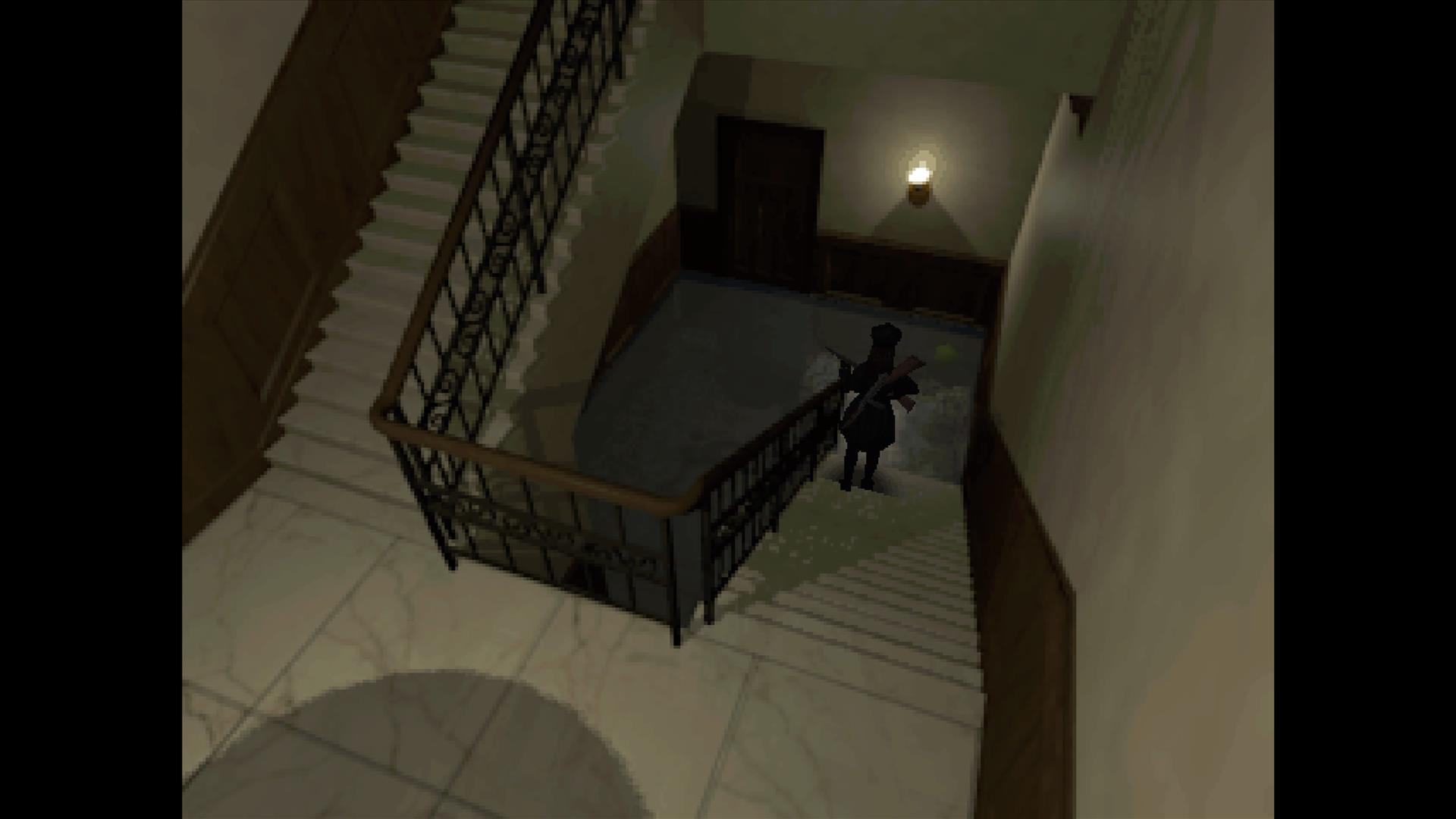 Like classic survivor horror games this game uses pre-rendered backgrounds with a fixed camera along with tank controls. Moving from screen to screen will change the background and camera angle, and the reason why this works so well is because with these camera angles there are a lot of clever ways to scare you. Walking up a flight of stairs and seeing something walking on the floor below you is horrifying, with enemies hiding around corners or behind walls you can't see right away. As you would expect with a survival horror game like this, there are also puzzles in the game and most of them I was able to figure out on my own, usually on the first try with some trial and error. I don't recall any except for one of them that required reading a note found in the area in order to figure out the solution. However, there is one puzzle that took me a bunch of tries to get but that was mainly because it's on a timer and if you don't finish quickly enough you die.
