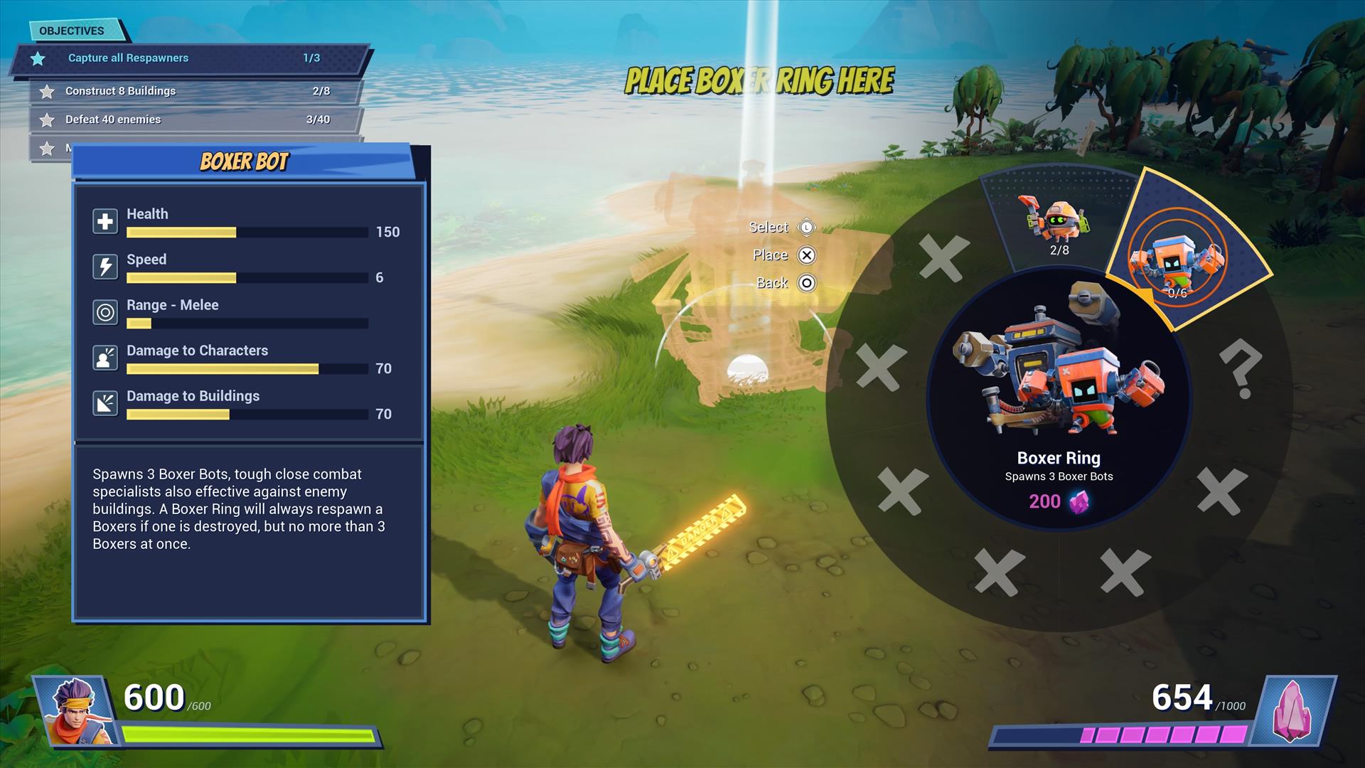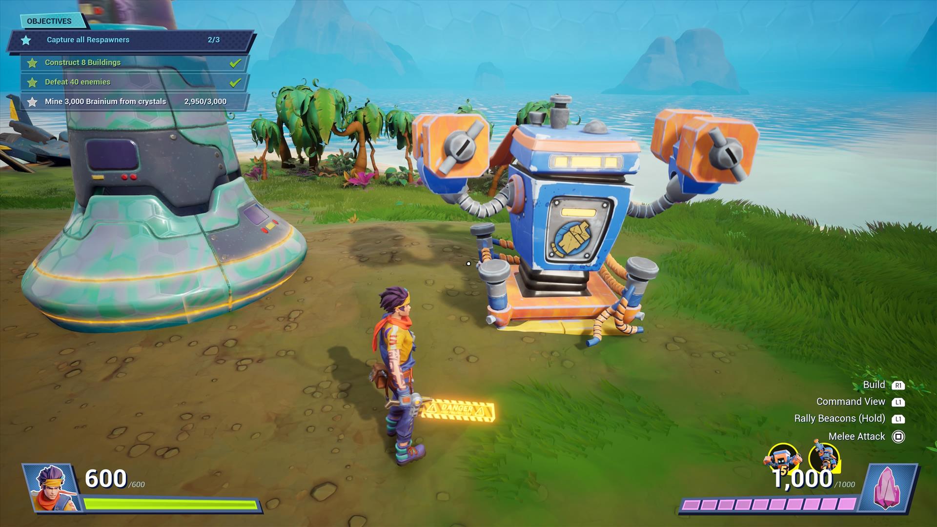 Adding a layer of functionality, the entire story campaign can be played in co-op with a friend. One plays as Chip and the other as Clawz as you work together to complete missions. This can be done both locally in splitscreen or online, and it works seamlessly in my experience. It did help to have both characters together at the same time since they have different abilities. Chip can overdrive structures and robots to make them more efficient, while Clawz can repair damaged structures, keeping you from having to do a costly rebuild if they get destroyed. Each character also has a different vehicle, which are sometimes needed to access hidden areas that may contain additional blueprints for robot structures and collectibles.