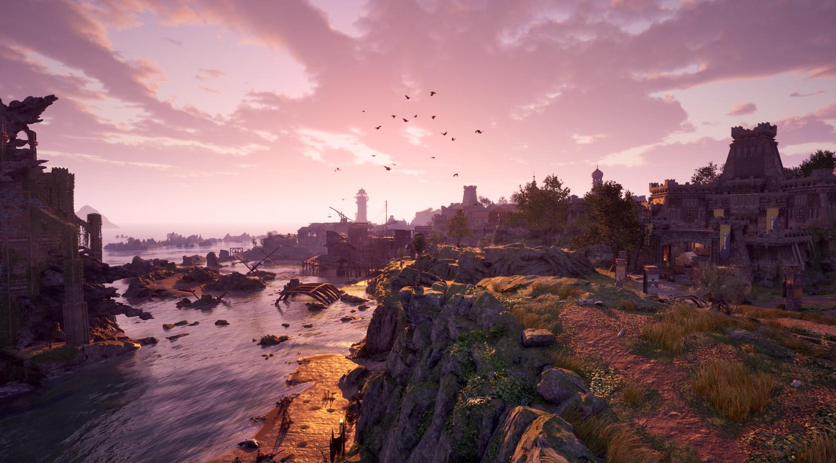 Following a brief jaunt through a prologue that introduces the game’s basic mechanics and chucks a bit of gear the player's way, most of the time I spent in Avowed was in the game’s opening region, Dawnshore. This rather sizable map includes several subregions to explore, including the Fractured Shore and Clavager’s Landing, the dockside settlement where the player first comes ashore after a bit of the ol’ “shipwreck and recovery”.