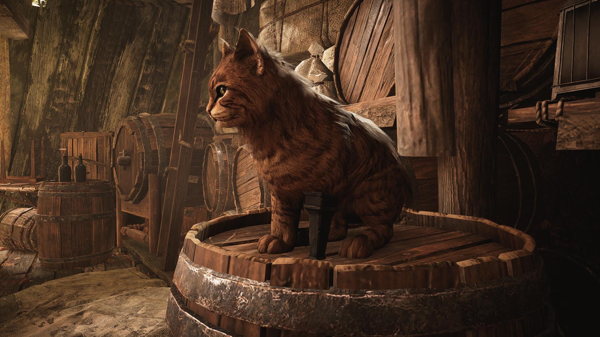 Slow-walking to a tavern along the back wall of Sainte-Anne, I found my first Skull and Bones crush. Yanita Nara, the tavern owner and proprietor of the black market. Not sure if it’s the octopus neck tattoo or the shaved head look from an old burn injury, but I’m definitely sweet on her. I like her Mr. Whiskers kitty on the beer barrel behind her, too.