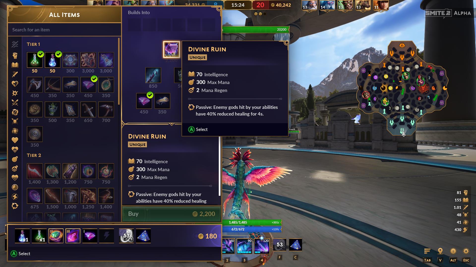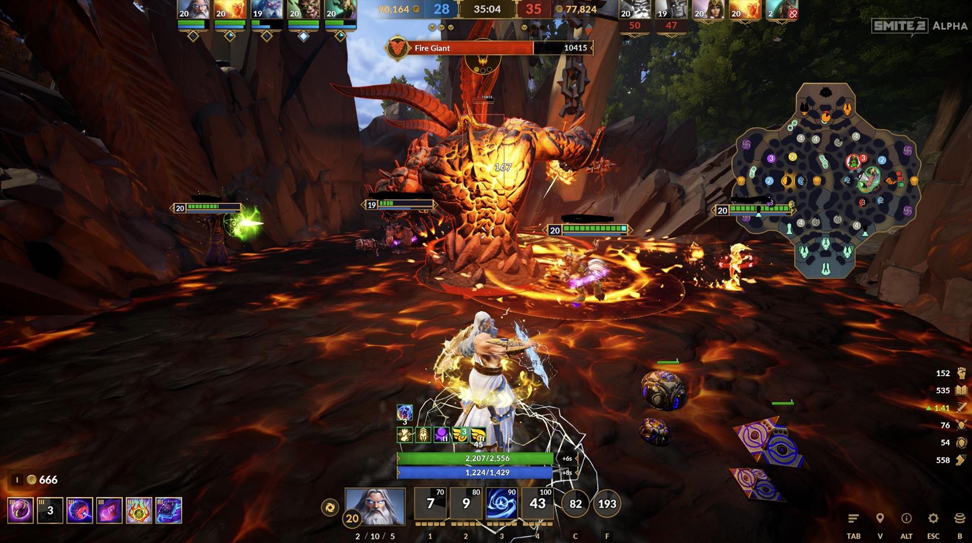 The biggest change to the game however and one of my favorite things about SMITE 2 is is how gods aren't grouped into classes anymore. There are no more mages, assassins, guardians etc... Every kit for every god in the game can contain physical damage, magical damage, or both. Their abilities will also now scale from items off of intelligence or strength. For instance, Bacchus - who was a magical guardian in the first game - now has both physical and magical damage in his kit. His belly flop does physical damage which scales off of strength and his belch does magical damage and scales off of intelligence. This means that any character can build both strength and intelligence items and can lead to some really crazy builds. This also means that every character can pretty much play any role. Ymir Jungle, where he's just face punching enemies and doing crazy crit damage, Zeus carry focusing on attack speed; I had a ton of fun playing around with different characters in different roles and they all worked out really well. This will also really help when the full game is released where people won't be forced to play certain ways, especially if it's with a role like guardian or jungle that they don't like or aren't familiar with.