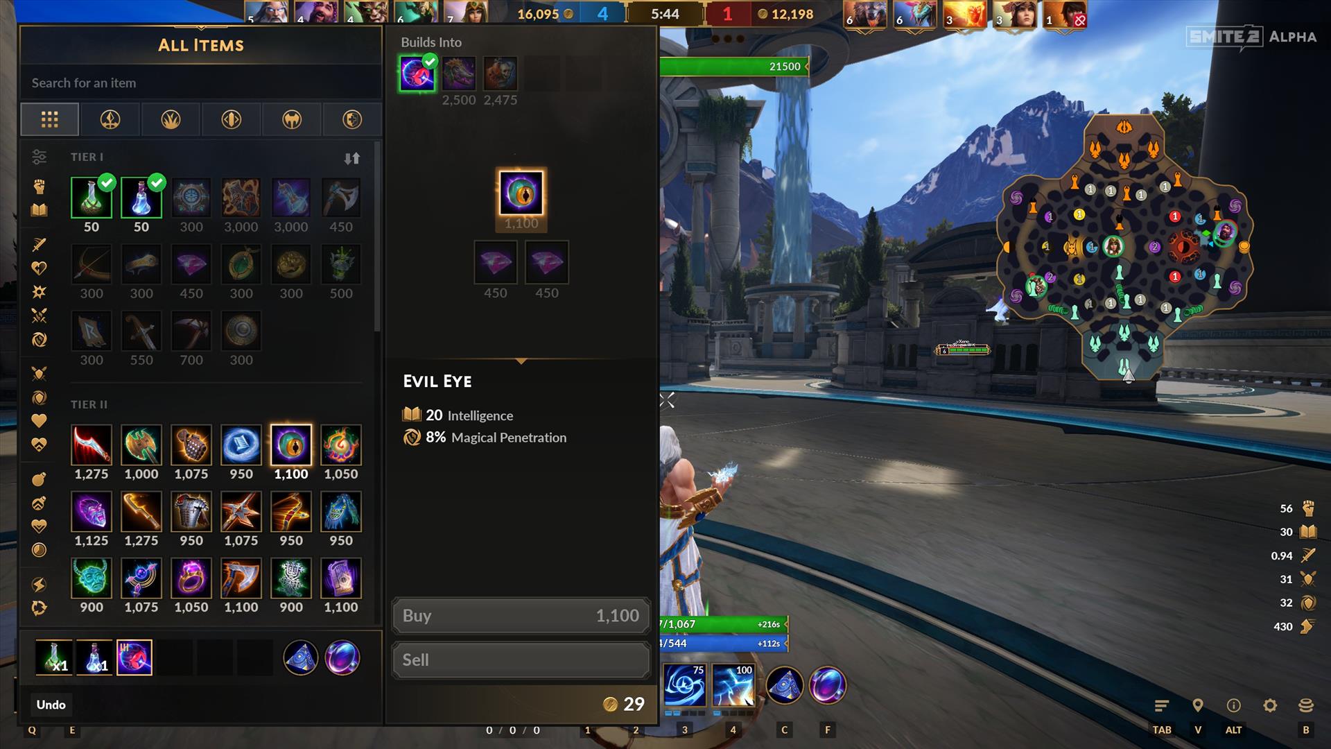 The other big issue I have is the new item store. I like the new way that we can buy items in how it gives us more freedom to experiment and do some pretty crazy builds, but the whole interface and UI is a complete mess. It's just a gigantic wall of icons with no easy way to see what they do unless you hover over each one and in a MOBA like this, the more time you are away from your lanes, the more farm you are losing and the more space the enemy is putting between their level and yours. Now there are ways to easily get to items such as a search function and the ability to separate items by type like strength, intelligence, life steal, cooldown, etc. I was playing on PC, so I had no problem navigating the item store, but I have seen console players saying it's incredibly tedious and hard to navigate. This is something that I really hope gets streamlined as the game gets updated more and more. I feel like all you really need to see is the tier 3 items like the first game and when you click on one it will then show you which items build into it. This already happens when you click on a tier 3 but still I wish this interface was cleaned up a bit.