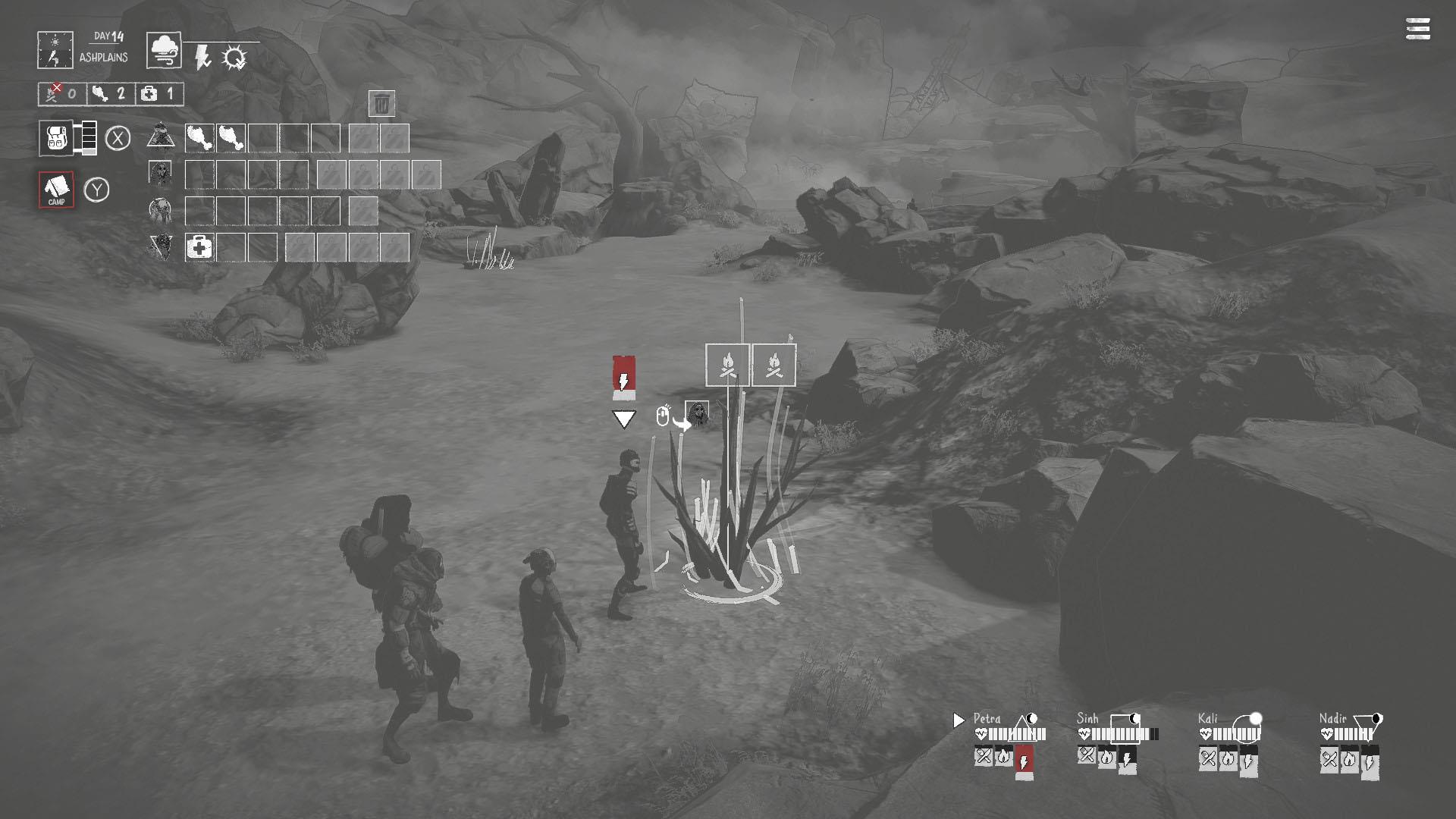 When you set up camp for the day, a little experimentation goes a long way in revealing each team member’s strengths and weaknesses. Kali is your leader, a great conversationalist that can boost morale like nobody’s business. Nadir is your sneak, scavenging while everybody is roasting marshmallows. Sinh is your muscle, ready to solve any and all problems with their fists. And Petra might’ve just been plunked into a pseudo-leadership role because she’s a jack of all trades.