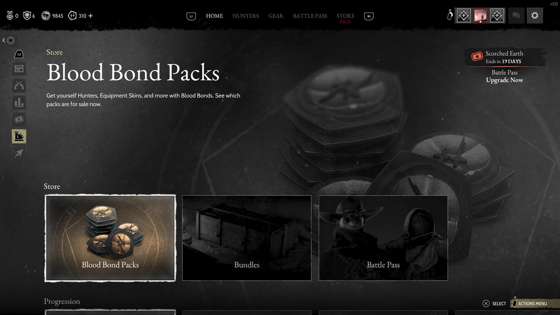 Things start falling apart as soon as you leave that tutorial and are greeted with as oversaturated a main menu as you'll find anywhere. Anyone who's had to wade through the swamp of Activision's Call of Duty series the last few years will instantly recognize it as a confusing billboard meant mostly to advertise various paths to the online store. The top banner is of course reserved for whatever is "on sale" and the links to the battle pass are plastered into tiles on just about every other row of options. The most confusing thing is that it's not even clear how you pay money in this game, because while it's plain as day that amongst the currencies Blood Bonds are the more rare and the one you can top up from the online store, the tile to buy packs is a dead link that returns an error and the other option to get to the PSN from the Actions menu was greyed out. I guess the price really must be paid in blood rather than dollars, I don't know? I do know that Blood Bonds can also be earned in-game through bounties and other means of reward.