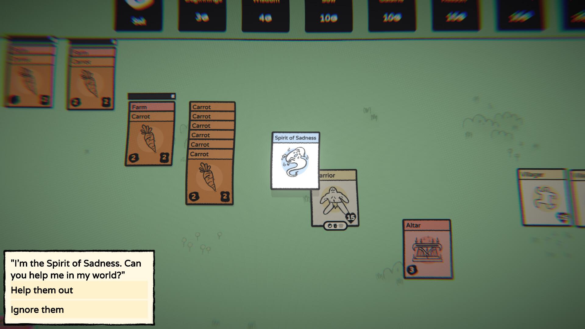 The core mechanic of Stacklands is the survival loop - get villagers and have them mine resources to sell for coins and eventually turn that into new packs, new discoveries, and crafting formidable upgrades. Fail to harvest enough resources or food and see the game run coming to a screeching halt. Upgrade a woodcutters bench for unlimited wood or a mine for rocks and now your economy is really starting to pick up. Craft a merchant shop to double your sales of resources, but don't forget to harvest food as each round is played on a timer. At the end of that timer, or "moon" (month) all your villagers have to eat, so you better have harvested enough sustenance because starvation at this checkpoint means death. There is even a distinct endgame with a shadowy magic forest to explore via portals that can randomly appear and spawn an enemy encounter if you ignore it, or choose to enter it and confront the witch that rules the dark forest from the other side. So unlocking weapon and armor recipes and crafting your villagers into archers, barbarians, or wizards becomes it's own steep challenge on top of managing the economy to provide wealth to your prospering village.