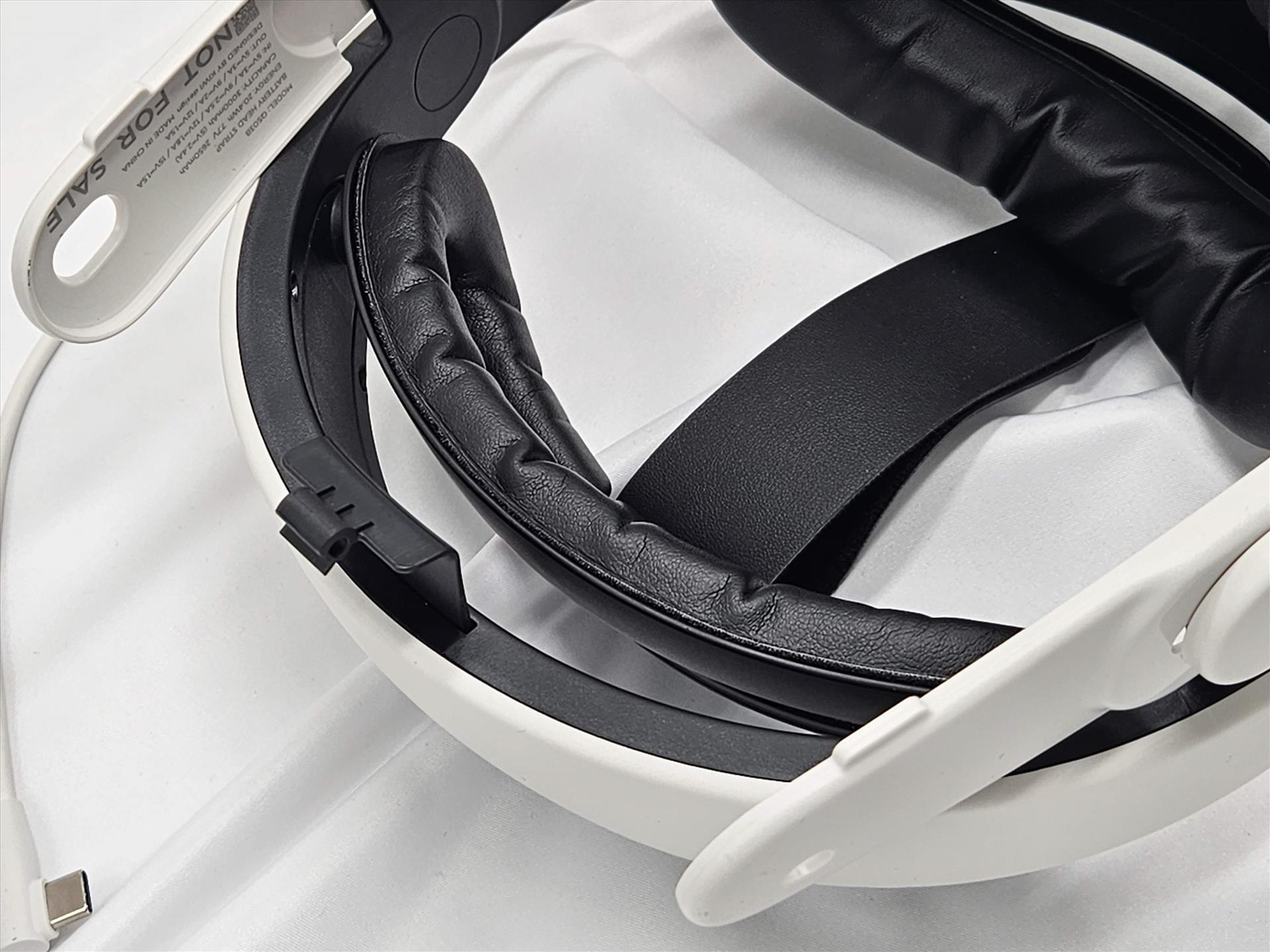The H4 Boost attaches to the Quest 3 by snapping on to the arms, just like most straps made for the HMD. There are cutouts for the USB-C port and the 3.5mm headphone jack for those using it with a Quest 3. For those wanting to use it with the Quest 3S, you’ll have a 3.5mm headphone jack hole that’s going to lead to nowhere.