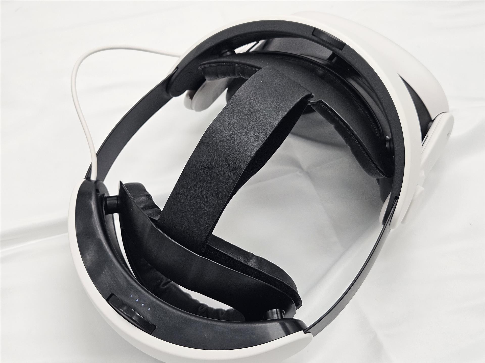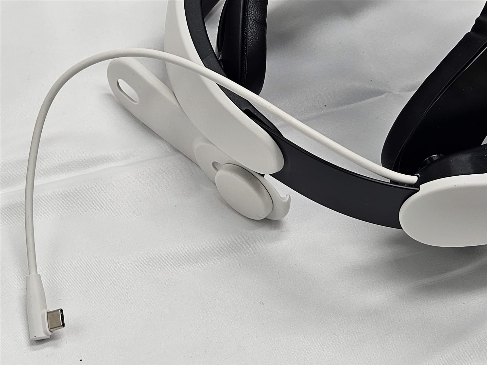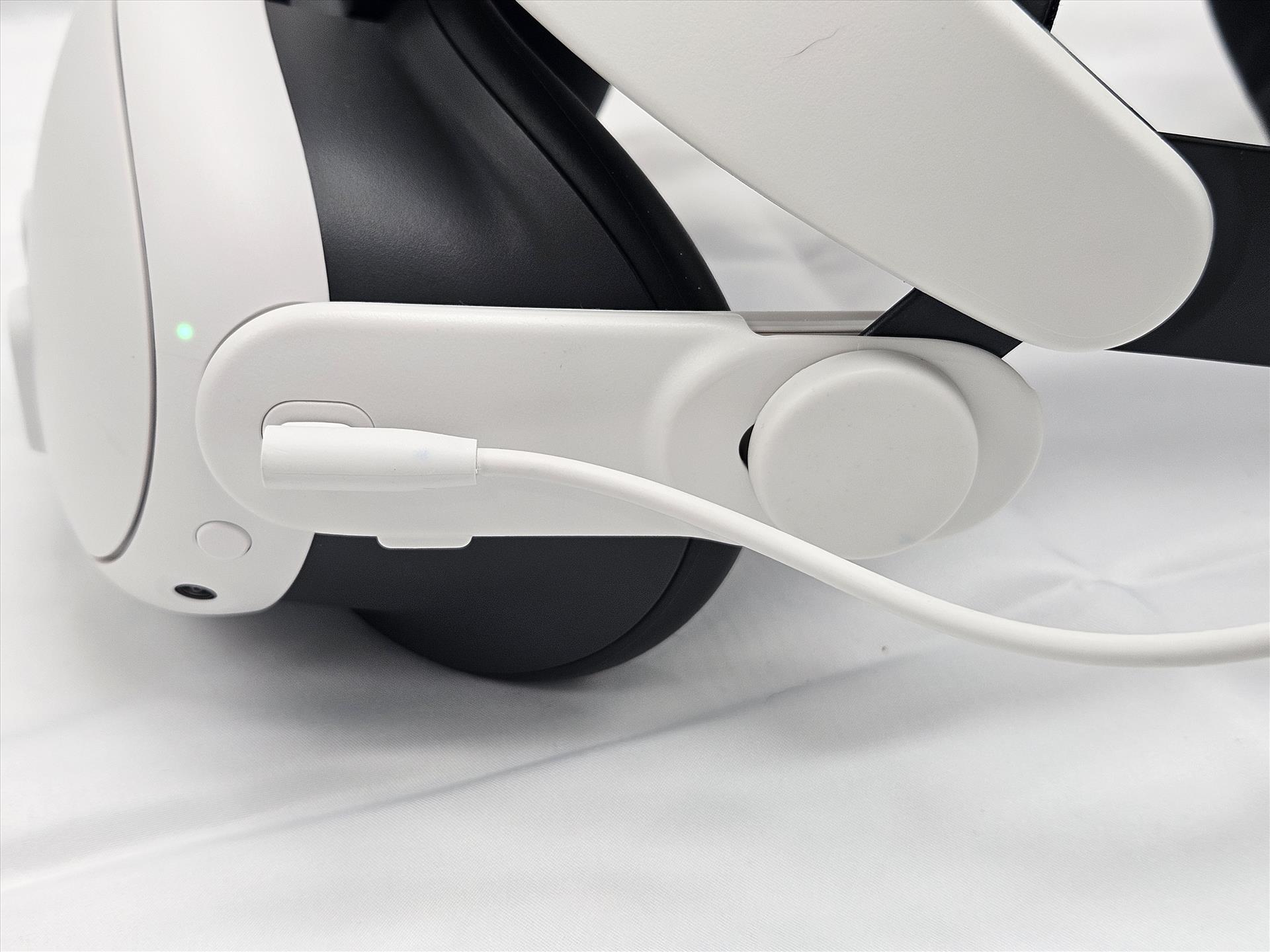 A USB-C cable comes from the back of the H4 Boost to the front on the left side to plug into the Quest 3. Unlike the K4 Boost, the H4 Boost has a longer exposed cable that doesn’t sit flush with the strap. That’s because of the design where the side straps are more of thin strips of plastic so it doesn’t allow for the cable to run on the inside of a housing. The cable is still short enough where it doesn’t sit too far away from the strap, but I do like the design of the cable on the K4 Boost a lot more. That said, there’s not a good way in its current form to hide more of the USB-C cable, so the look isn’t as clean as the K4 Boost.