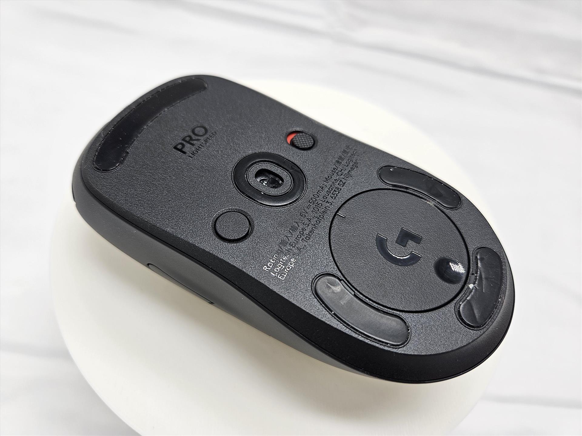 The bottom of the mouse sees five pads that the mouse glides on. There’s one at the top, one around the sensor, and three around the Power Play puck area. I’m actually using the Pro 2 Lightspeed on a very old Power Play pad and it glides very well on the surface. I don’t have any other surfaces to try it out on yet, but if you’re going to be using it on Logitech’s charging mouse pad, you’ll be good to go.