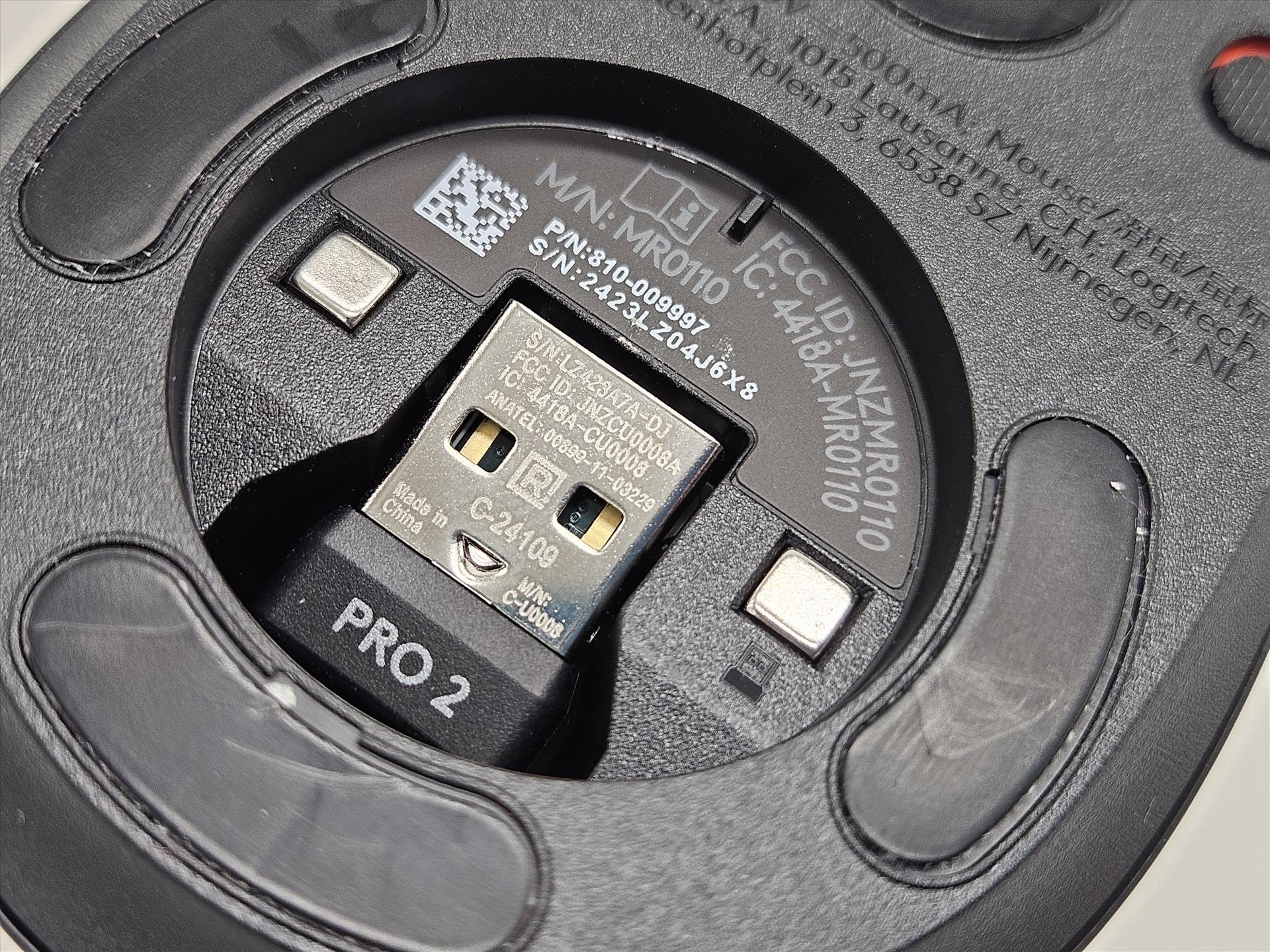 Below the sensor is the optional Power Play puck connector and a storage area for the USB dongle. If you connect the Pro 2 Lightspeed to the Power Play mat, you don’t have to use the dongle as the wireless connection will go through the mat. As I mentioned, I’m using this mouse with Power Play so it has a constant source of power for charging. It’s a solid way to use the mouse and you won’t have to ever worry about the mouse having a dead battery.