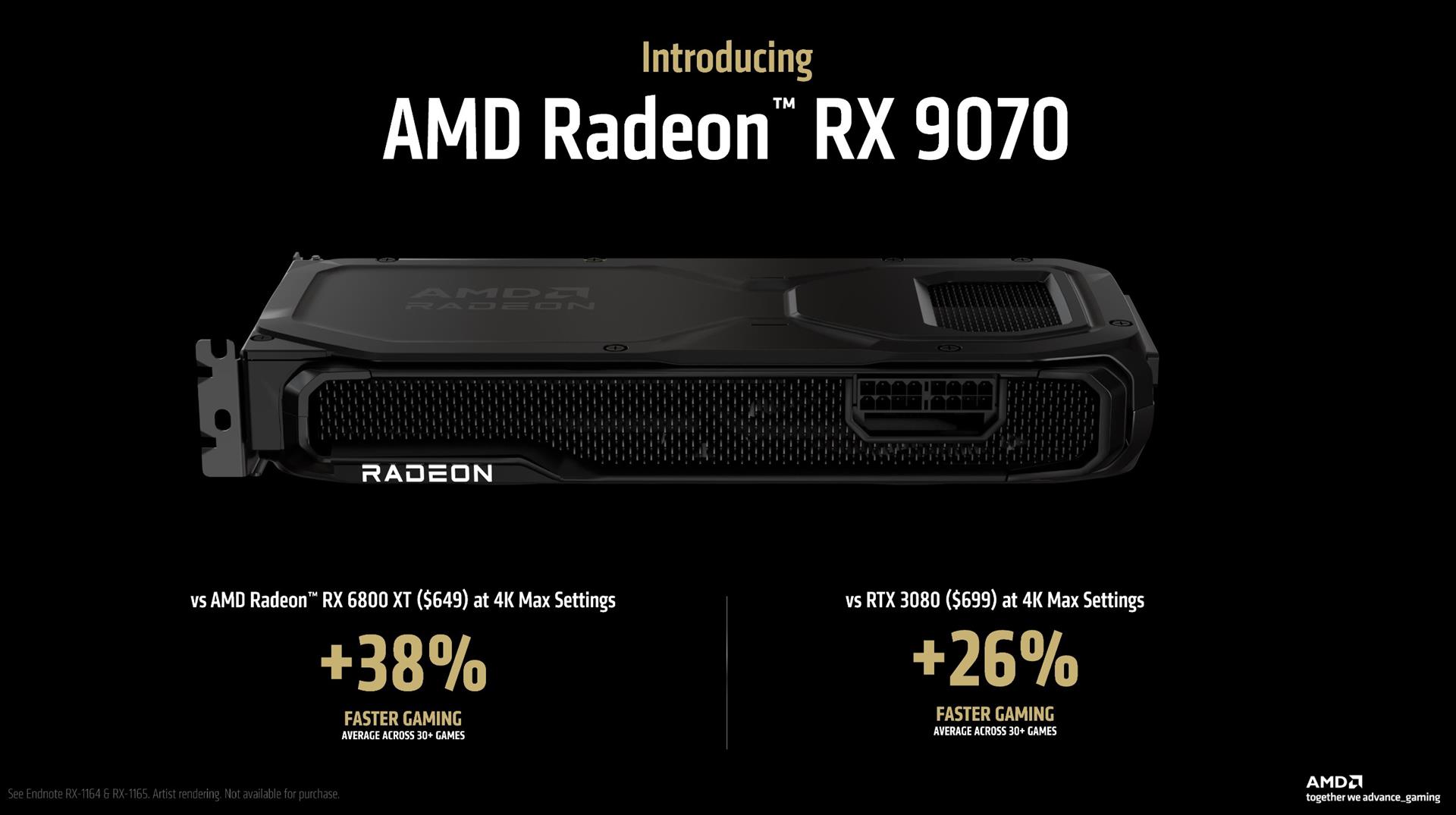 While AMD didn’t have any Blackwell cards to compare it to, they are saying the RX 9070 is on average 26% faster than the GeForce RTX 3080 at 4K settings. When compared to the RX 7900 GRE, AMD is touting an increase of 20% to 21% on average gaming at 1440P and 4K respectively in both native rendering and using raytracing.