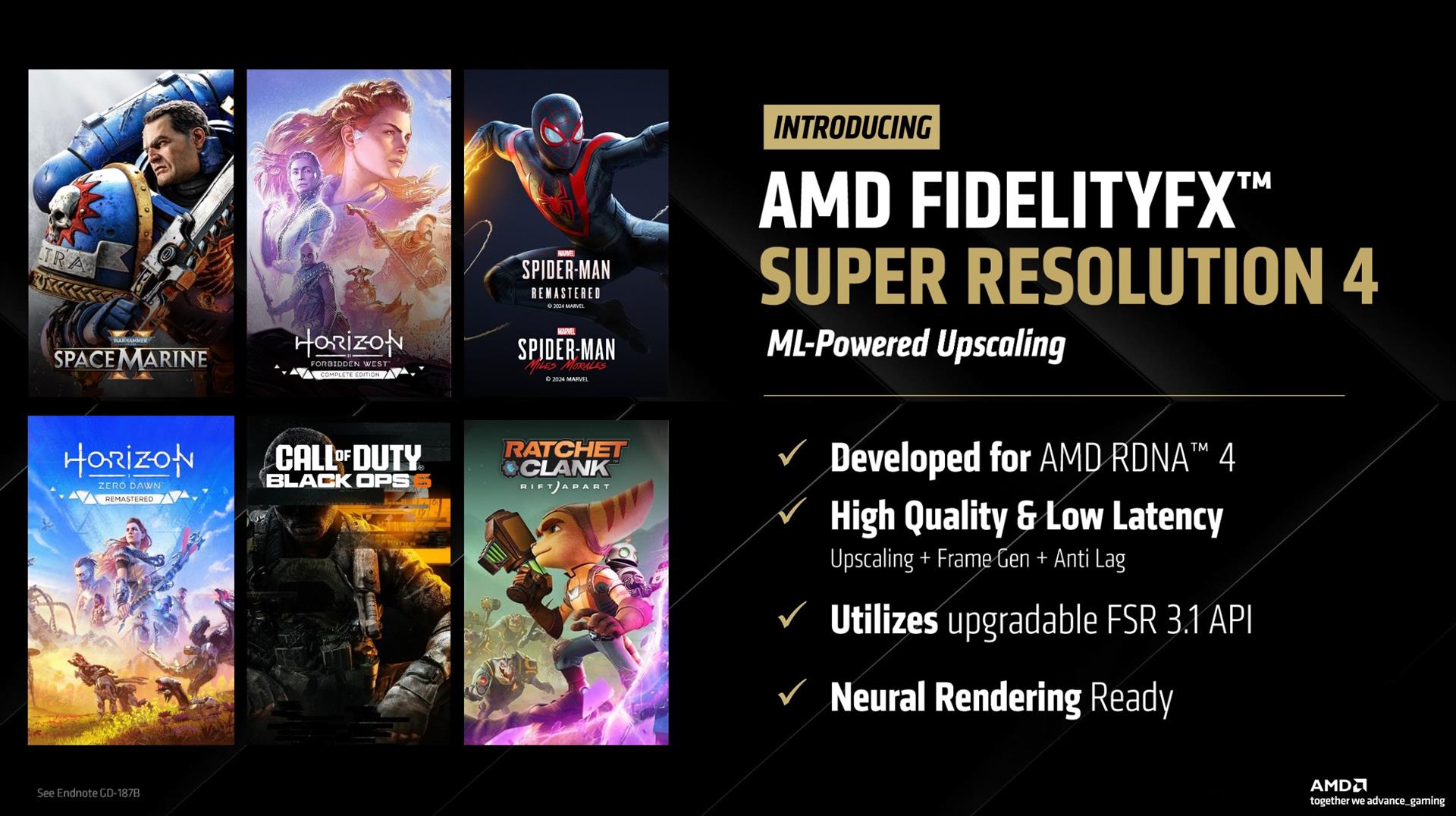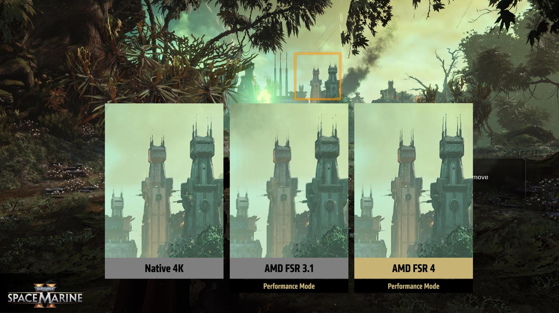 On the software side of things, AMD continues to improve their suite of products to enhance gaming. The big one is AMD FidelityFX Super Resolution 4 or FSR4. AMD’s FSR looks to improve on the image quality when upscaling games. In the one image below, you can see the quality improvements in the building’s extended structure even over native rendering. They look more accurate and more visible. AMD’s FSR technology has been a little bit behind compared to NVIDIA’s DLSS technology so it’s good to see the improvement. AMD has said that FSR4 will only be on the two RDNA 4 cards at launch, but hopefully it’ll come to older GPUs in the near future. At launch, there will be around 30 or so games that will have FSR4 available with more than 75 coming this year.