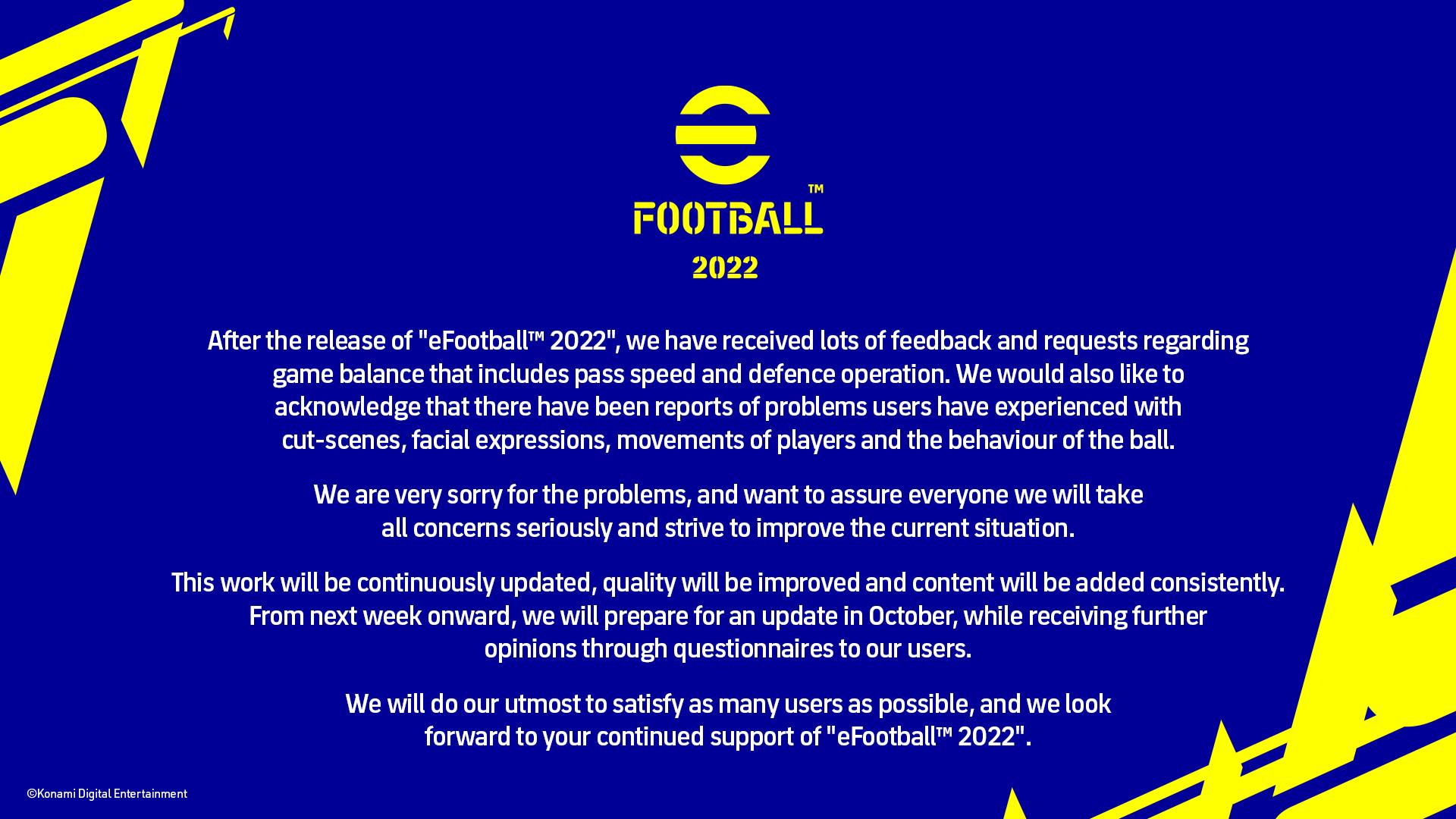 Games don't typically do this but we see something like it with Early Access releases. I played the rebranded Pro Evo Soccer, now eFootball 2022, late last week and bit over the weekend and can say that Konami made the bold move to try it full-on with their sports sim. The result? A disaster. One admitted as much in a tweet by the official Twitter account: