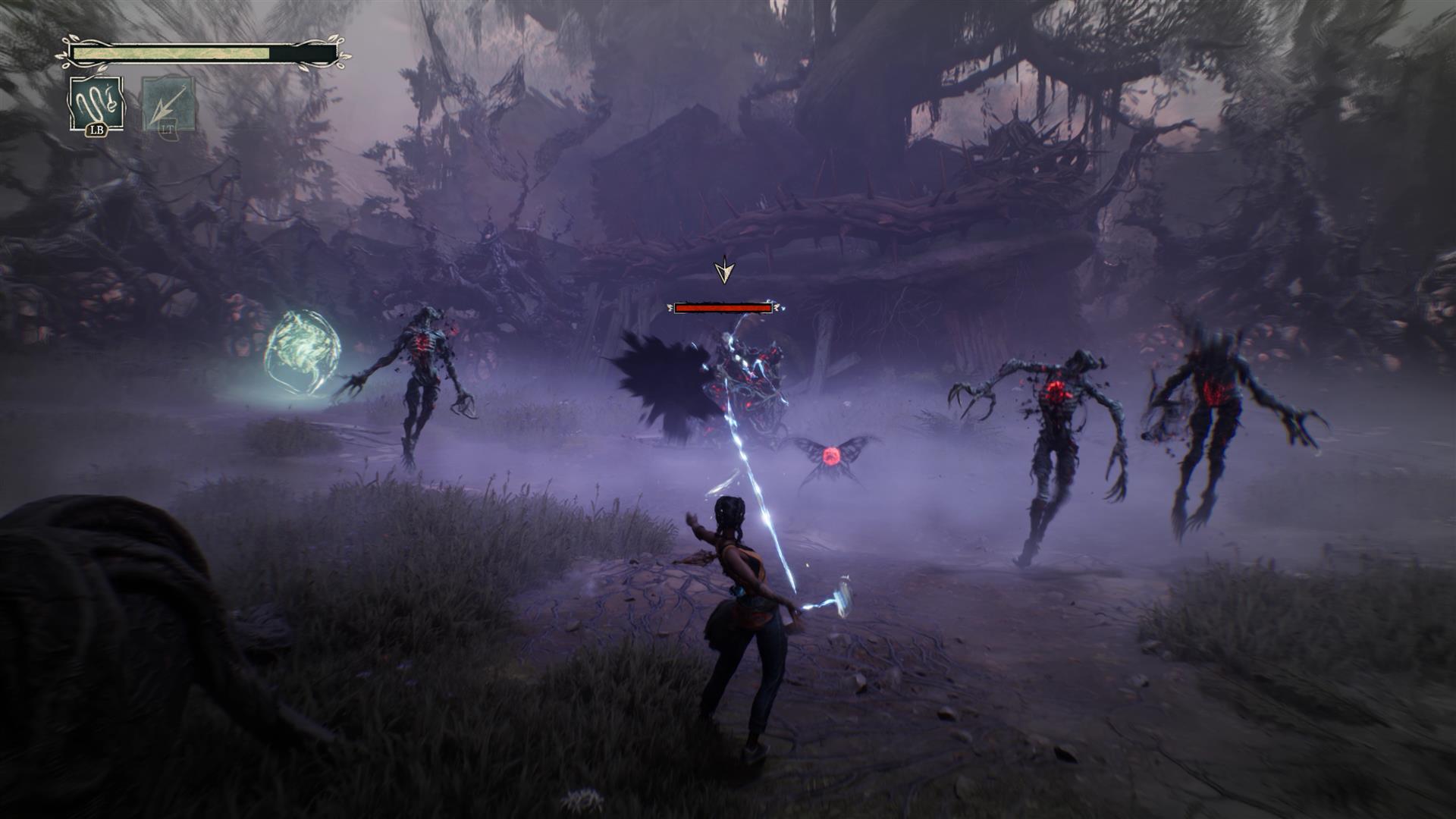 When the music comes to a halt, and it's time to fight. The game does teach you how to control Hazel's attacks, and they are just one button mostly. She can use a jump strike to extend her combos, or she can use a charge attack. The enemies that stand in your way are called Haints. The game lets you know that these monsters come from a combination of townspeople sorrows and stigma.