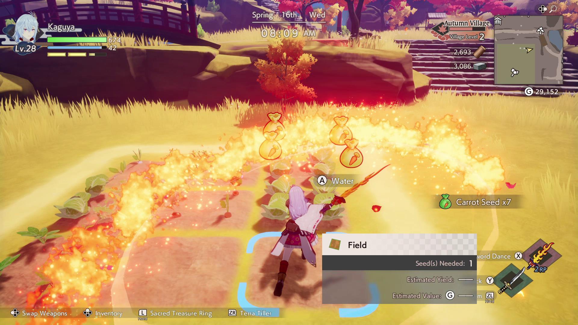 Let’s take the farming, for example. When the game started, I jumped right into the expected workflow: clearing land, hoeing plots, planting seeds, watering seedlings, harvesting turnips. It is a comfortable gameplay loop for a certain kind of gamer, and we all know how it works, right?