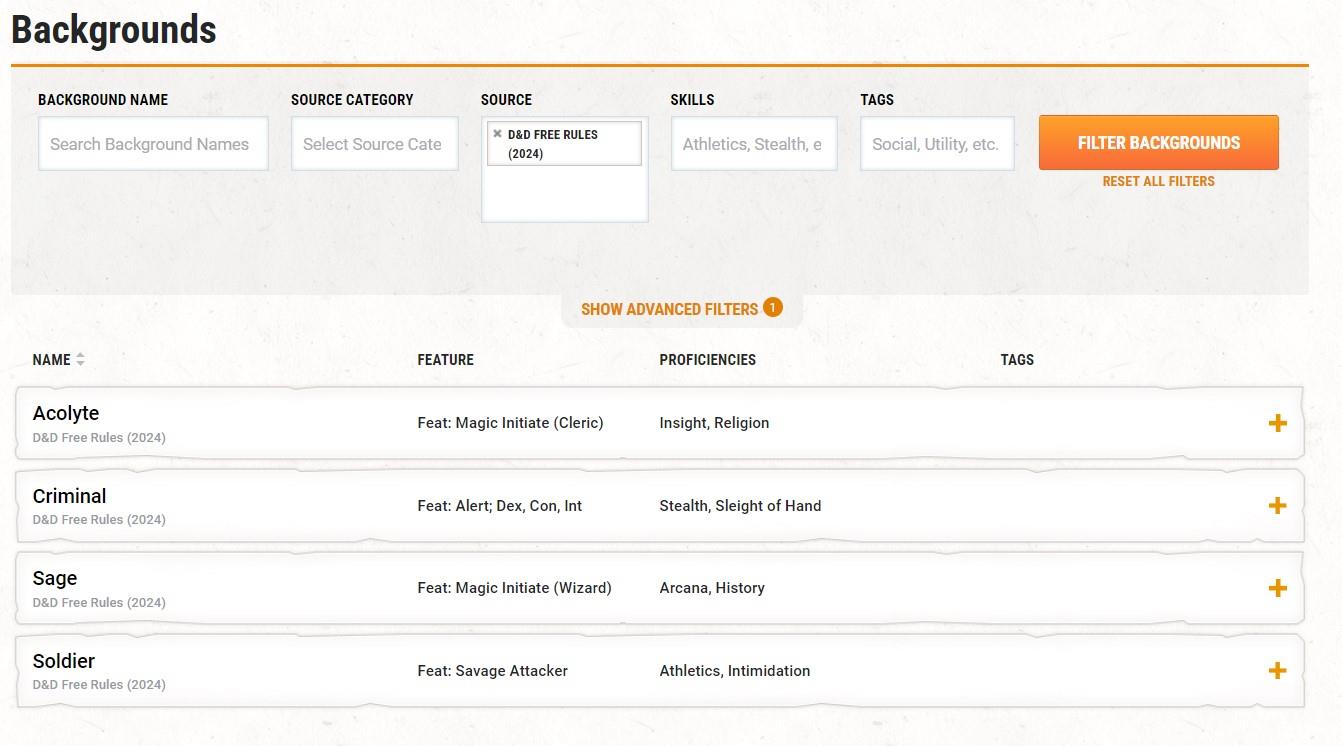 The D&D 2024 Free Rules come with four Backgrounds, too—although there weren't any Backgrounds in OD&D, they play perfectly into the four character classes above. Backgrounds are where you get ability score boosts from, too: