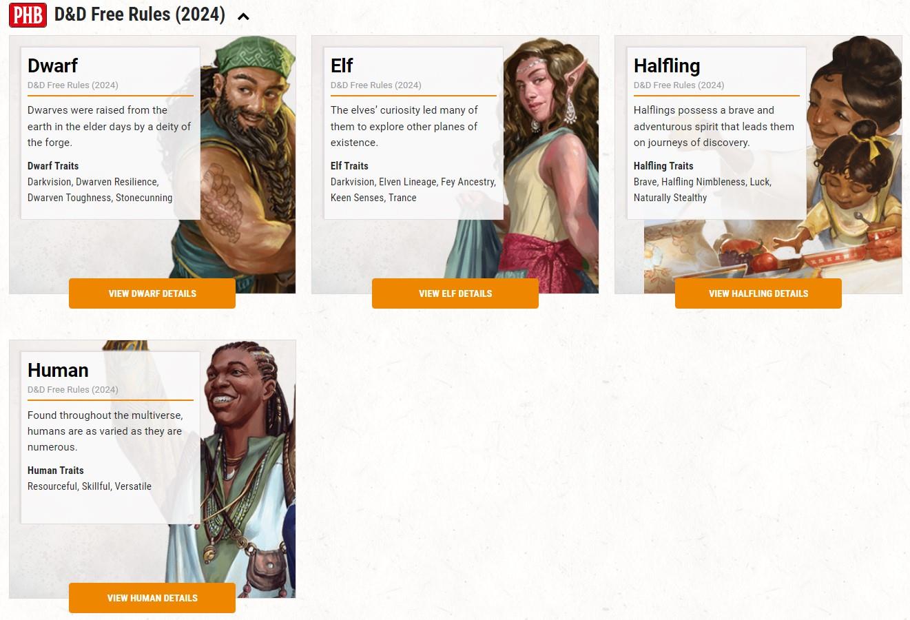 See? You probably already know which one of those you'd like to play. Those are the four original races (now called species in D&D 2024) that were available in Original D&D 1st Edition from 1974. It's a quietly brilliant celebration of D&D's 50th anniversary—taking us back to the choices creator Gary Gygax gave us back when Richard Nixon was resigning as President and Steely Dan was singing "Rikki Don't Lose That Number." There are always new kids on the block for you to explore later.