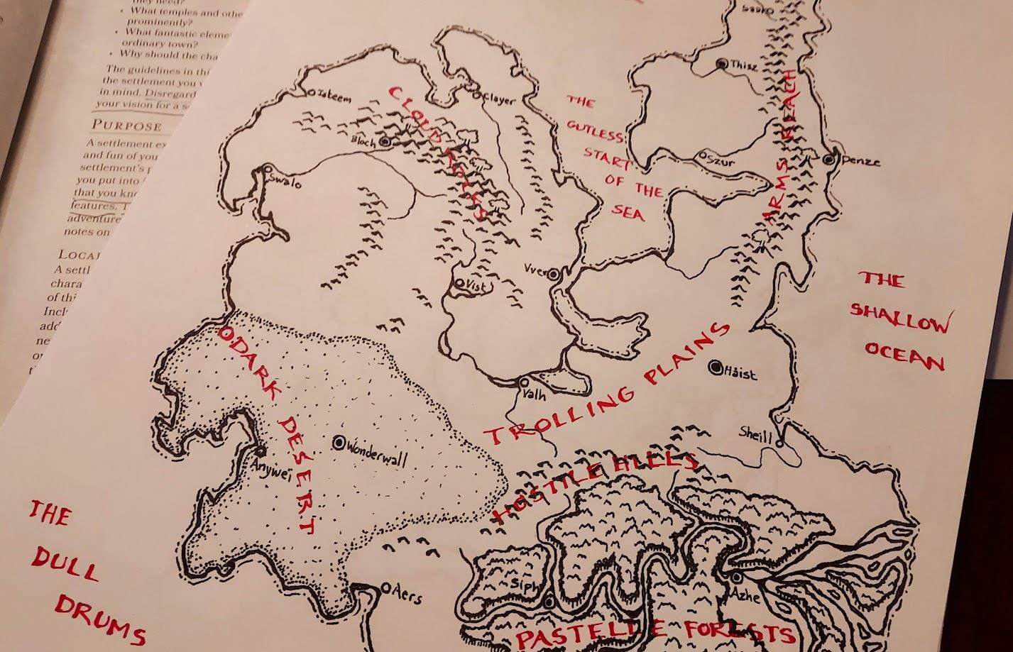 Drawing a map really bogged me down. I'm glad to have done it. But I'm not going to use it. What I am going to use is that foldout map that came with the Dragonlance adventure. Not to mention that book's Province Scale map of the Kalaman Region and Northern Wastes. I can't even imagine how long it took fantasy cartographer Francesca Baerald to pen this thing. It's a monster. A beautiful monster. She's done this a lot.